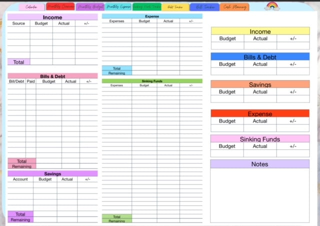Rainbow Budgets Monthly