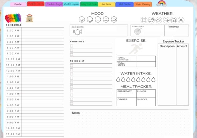 Digital planner that comes with calendar weekly and daily view also has stuff for budgeting